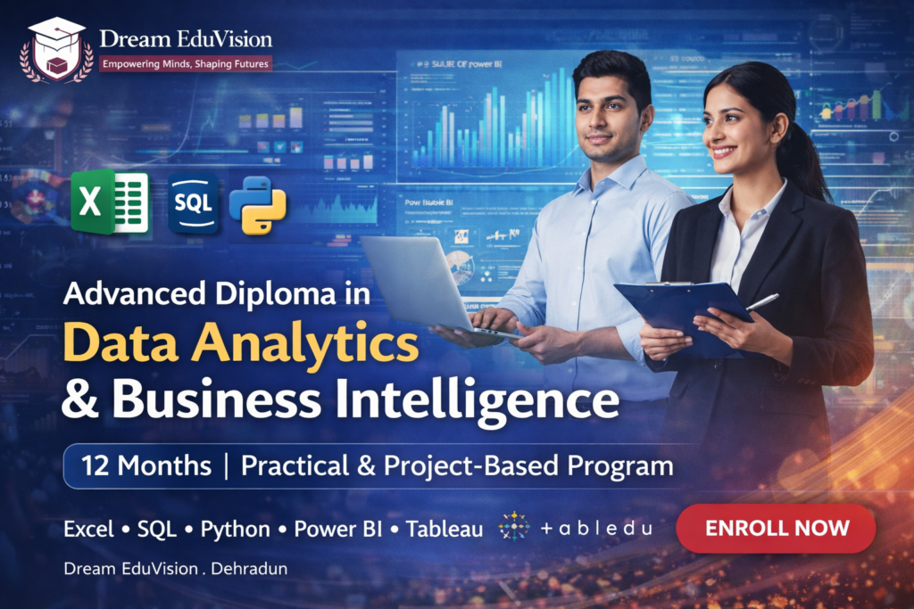 The Advanced Diploma in Data Analytics & Business Intelligence is a career-focused program designed to equip learners with in-demand analytical, technical, and business decision-making skills. The course trains students to collect, analyze, visualize, and interpret data to support strategic business decisions across industries such as IT, finance, healthcare, marketing, e-commerce, and consulting.