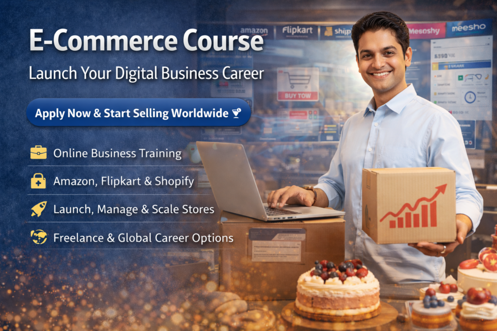 This program equips learners with practical skills to launch, manage, and scale e-commerce businesses across platforms like Amazon, Flipkart, Shopify, Meesho, and international marketplaces.